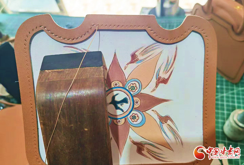日復(fù)一日與刻刀、皮革相伴,創(chuàng)作靈感的找尋曾是困擾高重民新品開發(fā)的主要問題,但他從未有過放棄的念頭,因?yàn)楦拭C深厚的文化底蘊(yùn),為他提供了取之不盡、用之不竭的創(chuàng)作源泉。“馬家窯元素、敦煌元素就在身邊,這些優(yōu)秀的文化符號(hào),總能讓我找到新的創(chuàng)作方向。”