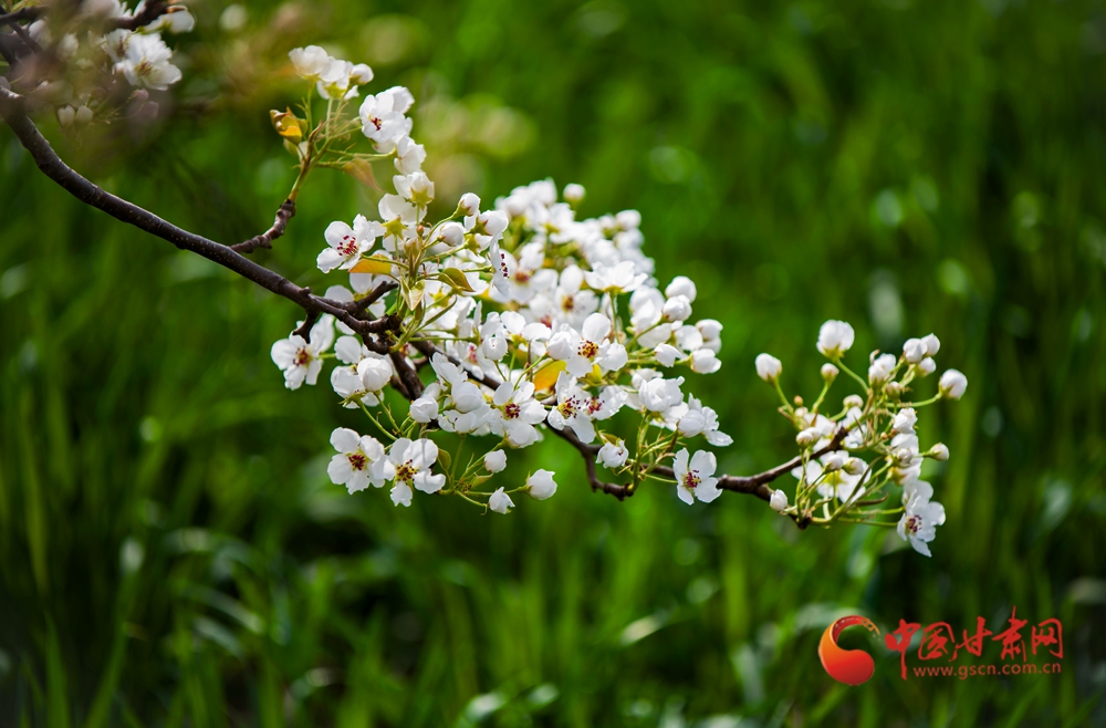 素白花瓣綴滿枝椏,嫩蕊輕顫,似落雪凝霜,又似春的音符