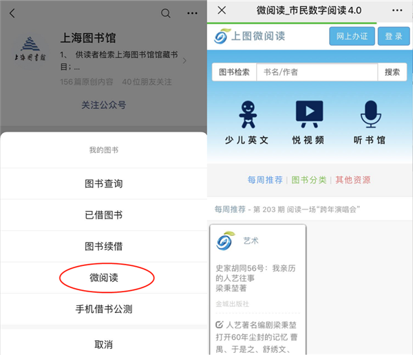 圖說:上海圖書館微信公眾號“微閱讀”