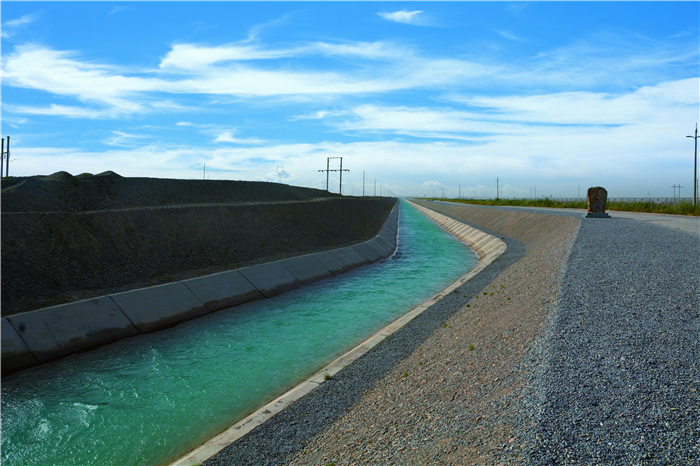 云散霧開(kāi)天地曠,北塞工程壯。昌馬總干渠,經(jīng)緯通衢,鬼斧神工創(chuàng)。