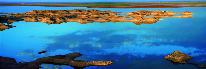 都將大漠風(fēng)塵惱,滿目沙石島。塞上有江南,綠樹(shù)清溪,早把春來(lái)報(bào)。