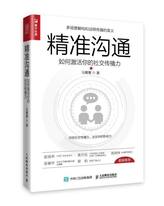 作為資深傳媒人和品牌傳播專家,在近日出版的《精準(zhǔn)溝通》一書中,馬菁菁以通俗易懂的方式向普通大眾介紹傳播學(xué)的一些經(jīng)典理論,嘗試以傳播學(xué)的視角分析和歸納日常人際交往與溝通中常見(jiàn)的問(wèn)題,并運(yùn)用傳播學(xué)的理論和方法為讀者提供一種新的解決思路。