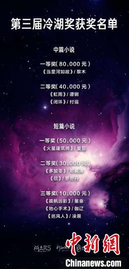 圖為第三屆冷湖獎獲獎名單?!O?!z