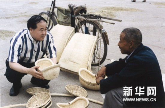 莫言與當(dāng)?shù)剜l(xiāng)親交流