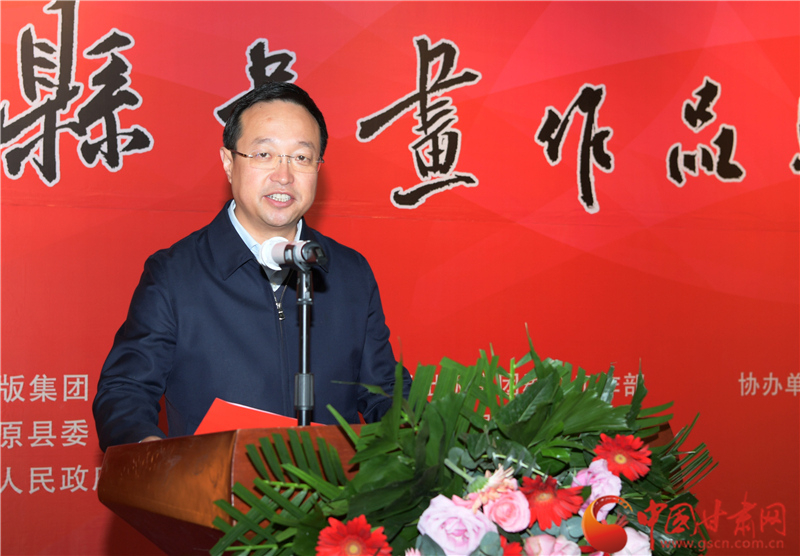 劉永升在致辭中說,鎮(zhèn)原是中國書法之鄉(xiāng),讀者是甘肅文化名片,企縣因扶貧而結(jié)緣,因文化而牽手。自2017年定點(diǎn)幫扶鎮(zhèn)原以來,讀者出版集團(tuán)著力實(shí)施了一批“看得見、摸得著、留得下、有成效”的好項(xiàng)目,探索出一條富有“讀者”特色的幫扶路子。特別是立足文化企業(yè)定位,堅(jiān)持扶智扶志,通過開展勞動(dòng)技能培訓(xùn)、幫助改善教育條件、推介宣傳地方資源、建設(shè)“讀者鄉(xiāng)村文化驛站”等一系列卓有成效的工作,切實(shí)打好“文化扶貧”牌,既堅(jiān)定了廣大群眾戰(zhàn)勝貧困的信心和決心,更激發(fā)了貧困群眾依靠雙手、勤勞致富的積極性、主動(dòng)性。此次與鎮(zhèn)原縣聯(lián)合舉辦書畫巡展,是開展文化扶貧、助力書香社會(huì)建設(shè)的務(wù)實(shí)之舉,也是提升“文化鎮(zhèn)原”影響力、加快地方文化產(chǎn)業(yè)發(fā)展的積極行動(dòng),更是提高貧困群眾文化素質(zhì)、振奮群眾精神風(fēng)貌的重要舉措。