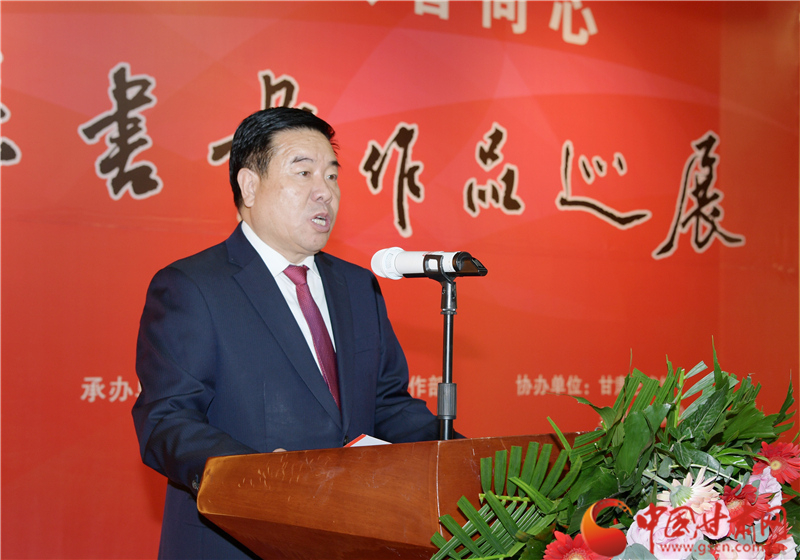 王登渤在致辭中說,素有“書法之鄉(xiāng)”的鎮(zhèn)原,歷史文化悠久。書法、繪畫興始漢代,盛至清末,而喜好書畫之風(fēng)則歷史更久。在歷代書畫家的精心耕耘下,鎮(zhèn)原凝聚起一股濃郁的習(xí)書作畫的藝術(shù)氣息。經(jīng)過百余年的傳承與發(fā)展,如今的鎮(zhèn)原書畫之風(fēng)盛行,無論城鎮(zhèn)鄉(xiāng)村、大家小戶,貼字掛畫蔚然成風(fēng),涌現(xiàn)出的一大批書畫名流,猶若星辰,遍布于全國各地。作為一個(gè)縣,此次能在蘭州舉辦書畫巡展,藝術(shù)水準(zhǔn)很高,充分展示出鎮(zhèn)原縣“中國書法之鄉(xiāng)”的深厚文化內(nèi)涵和鎮(zhèn)原縣書畫家們的才情智慧和藝術(shù)品格,也全面展示了鎮(zhèn)原發(fā)展變化的嶄新面貌。希望鎮(zhèn)原縣繼續(xù)加大扶持發(fā)展書畫事業(yè),持續(xù)提升鎮(zhèn)原書畫藝術(shù)發(fā)展水平,也希望涌現(xiàn)出更多的書畫藝術(shù)家,為繁榮當(dāng)?shù)匚乃囀聵I(yè)、助力脫貧攻堅(jiān)、美麗鄉(xiāng)村建設(shè)作出應(yīng)盡的貢獻(xiàn)。