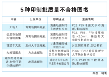 8家印制批質(zhì)量不合格單位的具體查處情況為:方志出版社、地震出版社、湖南地圖出版社、蘭州大學(xué)出版社等4家出版單位受到警告的行政處罰;廊坊市華北石油華星印務(wù)有限公司、湖南地圖制印有限責任公司、成都市金雅迪彩色印刷有限公司、甘肅澳翔印業(yè)有限公司等4家印刷企業(yè)受到警告的行政處罰。