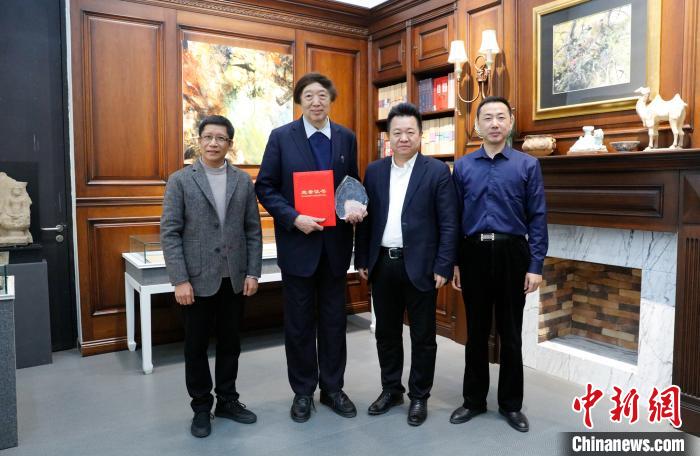 圖為主辦方卻專程來到天津大學馮驥才文學藝術研究院,送獎上門。 馮驥才文學藝術研究院供圖