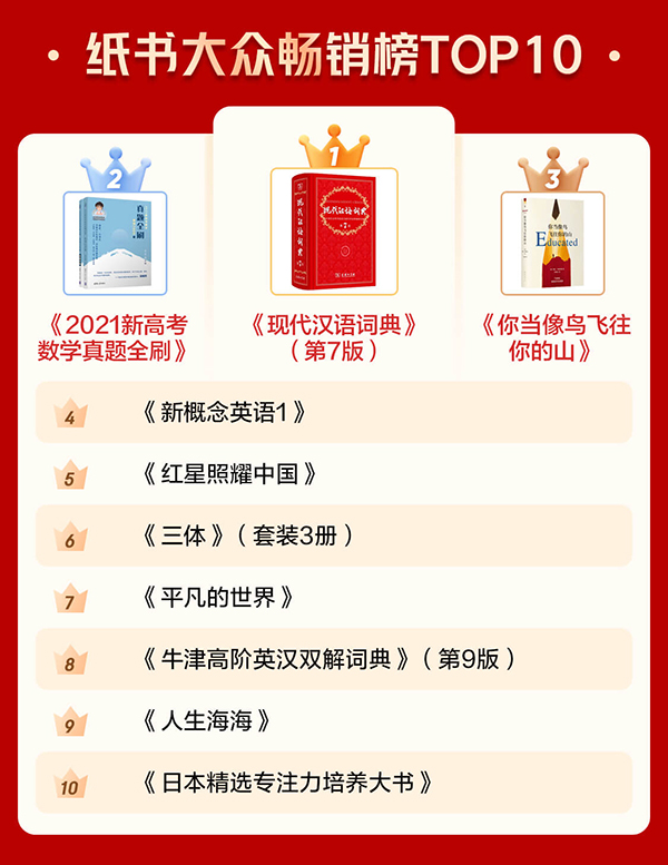 高考是中國大多數(shù)學生的必經(jīng)之路,想要從萬人中脫穎而出,需要付出許多的努力。從京東圖書數(shù)據(jù)不難看出,攻克數(shù)學難關已成為萬千學子的重要任務,在2020年最暢銷的大眾新書和最暢銷的大眾紙書中,《2021新高考數(shù)學真題全刷》分別排名第一、第二。