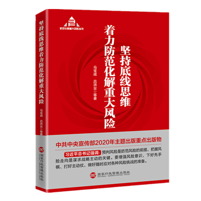 《堅(jiān)持底線思維著力防范化解重大風(fēng)險(xiǎn)》是該系列叢書的總論,由中央黨校(國(guó)家行政學(xué)院)副校長(zhǎng)應(yīng)急管理培訓(xùn)中心(中歐應(yīng)急管理學(xué)院)主任(院長(zhǎng))馬寶成等合作撰寫,現(xiàn)已由國(guó)家行政管理出版社正式出版發(fā)行。