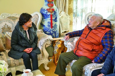 2017年,中國(guó)作協(xié)主席鐵凝(左)看望彭荊風(fēng)。資料圖片