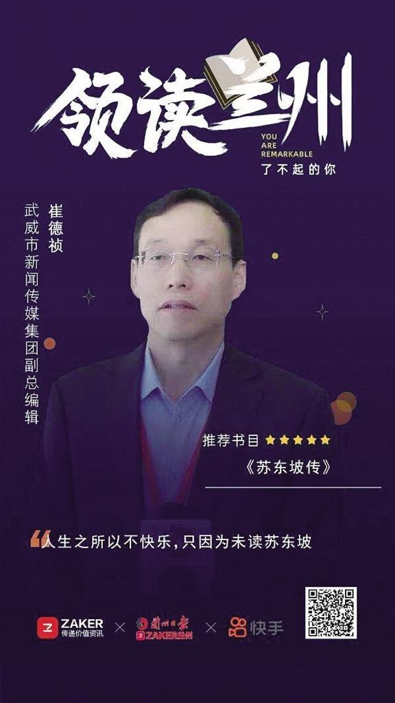 “領(lǐng)讀蘭州·了不起的你”大使薦讀進(jìn)行時……今天的薦讀大使是武威市新聞傳媒集團(tuán)副總編輯崔德禎,他最近正在讀的書是林語堂先生的《蘇東坡傳》,他向大家推薦這本書,希望跟大家一起閱讀!