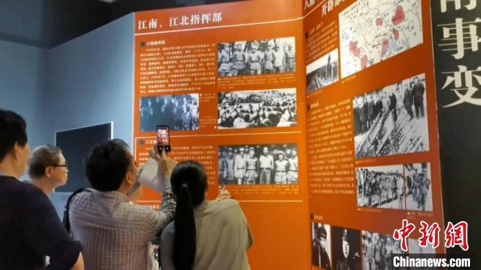 現(xiàn)場采風的作家和新四軍后代代表一行參觀新四軍軍部紀念館?!〉页棵?nbsp;攝