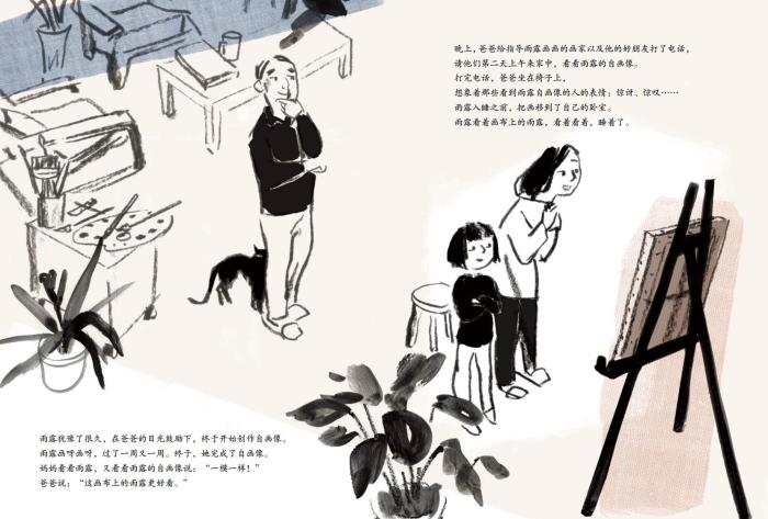 《雨露麻》是一部獻給所有堅持夢想并為之努力的孩子們的圖畫書,講述了一個小女孩用自己的一番誠意打動畫布的故事。一位愛畫畫的天才少女雨露,遇見一塊上等的畫布雨露麻,剛開始,畫布認為自己本該屬于著名的畫家,對小女孩的創(chuàng)作不為所動,甚至是進行破壞。最后,不僅畫布被女孩的執(zhí)著打動,連心疼她的父母也被打動。一面是和外在環(huán)境的沖突與和解,一面是對自我的認同與接納,女孩克服了多重困境,完成一幅美麗的自畫像,實現(xiàn)了自我成長。