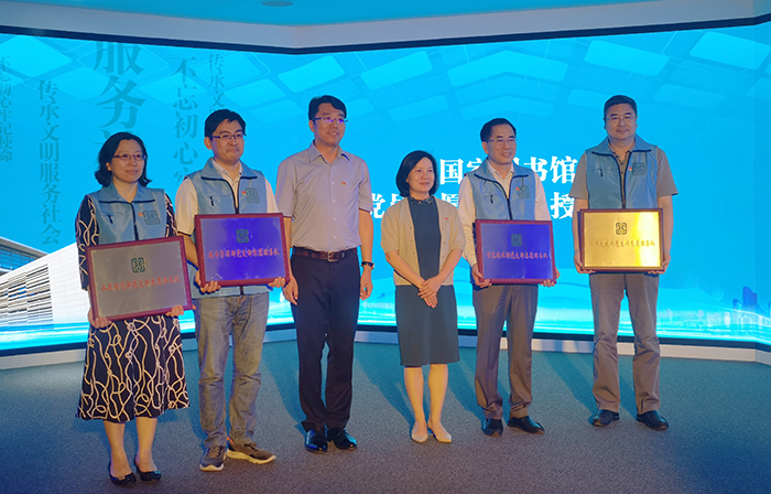 6月8日上午,國家圖書館新閱讀空間開放暨黨員志愿服務(wù)總隊(duì)成立活動(dòng)在國家圖書館總館北區(qū)舉行?;顒?dòng)現(xiàn)場,國家圖書館黨委書記、副館長魏大威,國家圖書館副館長、黨委副書記陳櫻為4支黨員志愿服務(wù)分隊(duì)代表授牌。