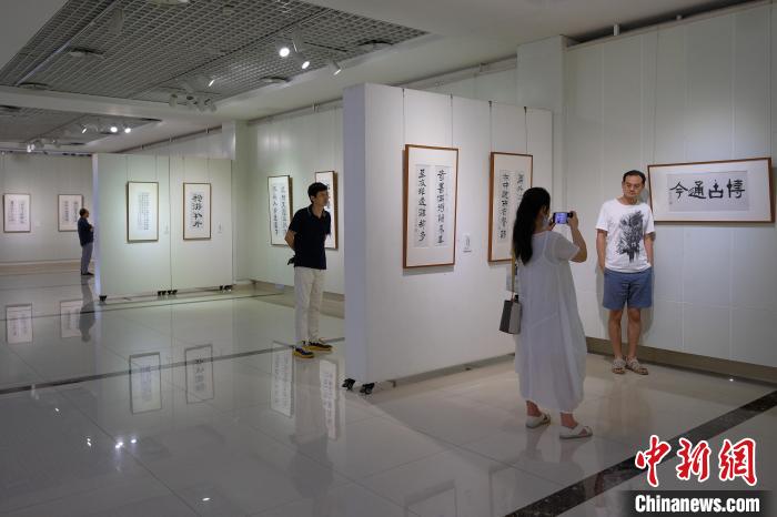 圖為觀眾在書(shū)法展上拍照留念。 何蓬磊 攝