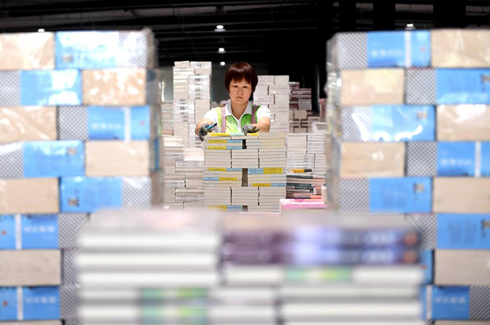 7月2日,在永清縣三圣口鄉(xiāng)一家圖書文化企業(yè)倉儲中心,工作人員在整理圖書。