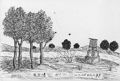 劉衍淮考察途中的畫(huà)作《額濟(jì)納河畔的觀測(cè)站》 (1927年9月28日)