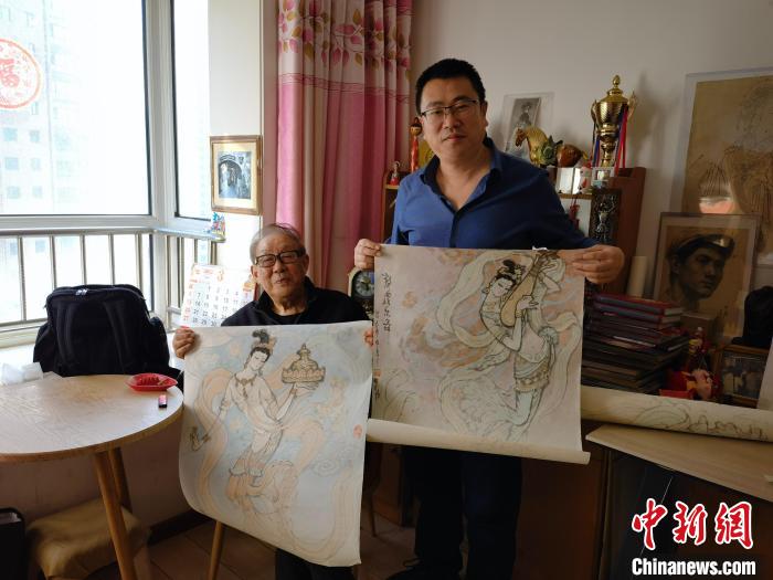 3月上旬,《絲路花雨·誕生》作者陳曉斌(右)拜訪今年86歲的舞美設(shè)計師李明強(右)老先生。 王先孟 攝