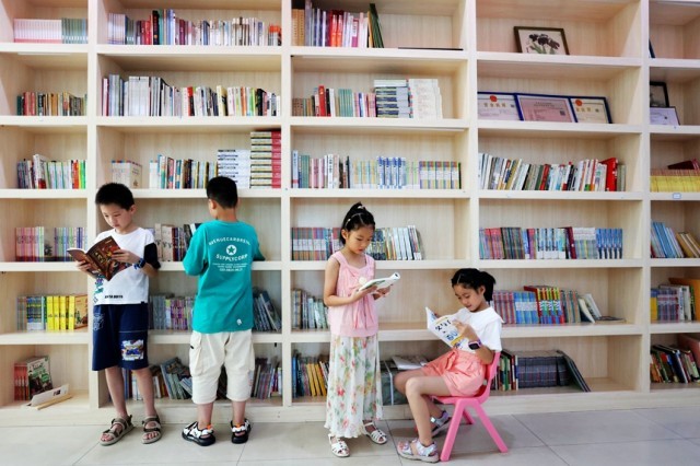 孩子在一角認真閱讀。