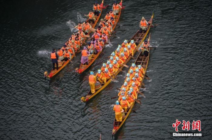 資料圖:正值農(nóng)歷二月初二,湖南長沙石燕湖舉行“龍?zhí)ь^”龍舟賽。楊華峰 攝