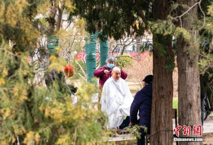 資料圖:北京市民在街頭休閑區(qū)理發(fā)。當(dāng)天是中國農(nóng)歷二月初二,民間有“二月二,剃龍頭”的傳統(tǒng)習(xí)俗,寓意辭舊迎新,帶來好兆頭。 中新社記者 侯宇 攝