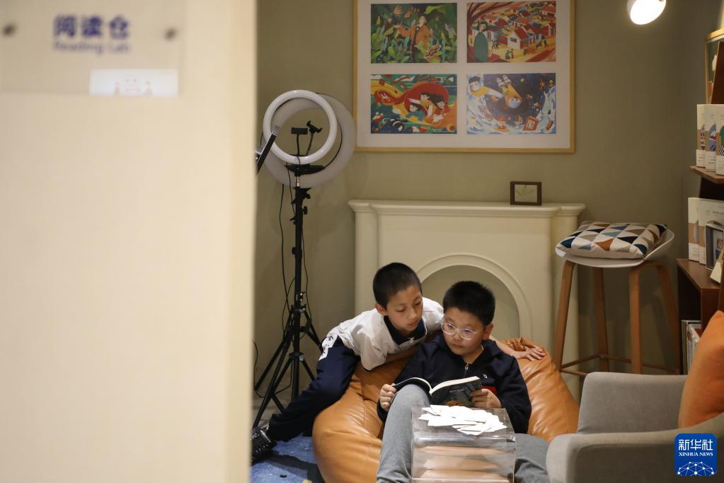 4月1日,在甘肅省蘭州市的讀者出版集團數(shù)字閱讀中心讀者小站,小朋友在多功能閱讀倉讀書。新華社記者 馬希平 攝