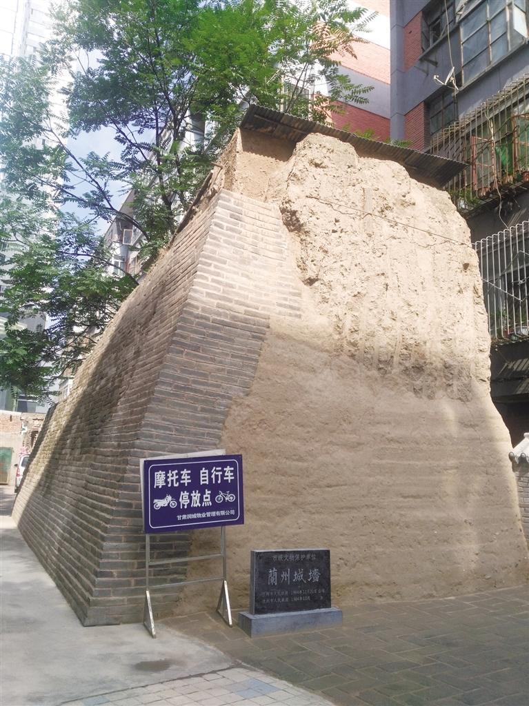 蘭州城墻絕大部分消失于20世紀(jì)50年代,剩余的在改革開放后,隨著城市建設(shè)的飛速發(fā)展而被拆除。蘭州的古城,已經(jīng)在人們的視野中消失。在城關(guān)區(qū)張掖路街道金塔巷東口南側(cè)南關(guān)什字潤城佳園小區(qū)內(nèi),還殘留了一段城墻,是蘭州老城內(nèi)南部城墻的一段,也是明清時期蘭州城墻最后的見證。這段城墻遺址夯土構(gòu)筑,外包砌青磚。南側(cè)表面磚層厚0.7米,長9.1米;城墻東側(cè)土層厚1.2米,現(xiàn)長不足4米,高約7米,城墻上面,還有人建了一間小房子。這是目前蘭州城區(qū)唯一留下的古城墻。1984年10月20日,被蘭州市人民政府公布為蘭州市文物保護單位。不知道能不能長久保留下去?