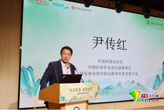 科普時報社社長、中國科普作家協(xié)會副理事長、國家林業(yè)和草原局林草科普首席專家尹傳紅發(fā)表題為“激發(fā)想象力和探求欲的科普閱讀”的主題演講。尹傳紅認為科普閱讀可以與孩子的智力發(fā)育同步進行,科學可能是最能彰顯問題、發(fā)現(xiàn)問題、解決問題的重要領(lǐng)域,科普閱讀能幫助孩子增長知識、增加智慧、增進思想。