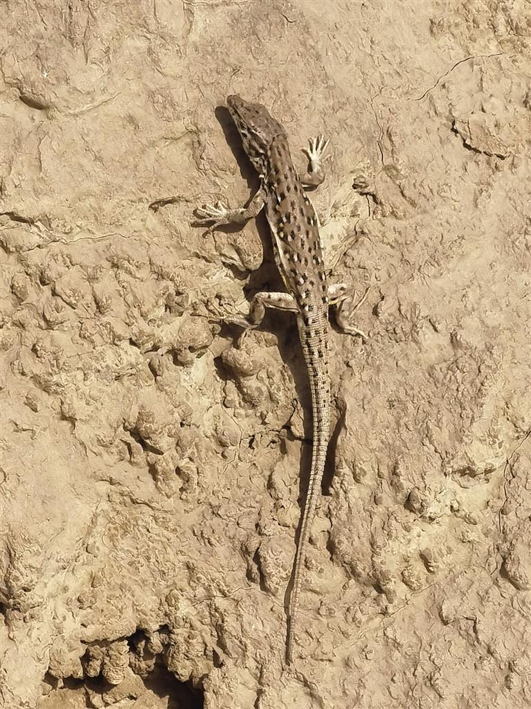 即將到達(dá)山頂,腳底下發(fā)現(xiàn)了亂竄的小蜥蜴。這是當(dāng)?shù)爻R?jiàn)的一種小蜥蜴,就是壁虎,當(dāng)?shù)厝朔Q為蝎虎子、七寸子。土皮色,半厘米粗,5至10厘米長(zhǎng),跑的很快,有很強(qiáng)的自我保護(hù)意識(shí)。若被人或獵食者抓住尾巴,會(huì)主動(dòng)斷掉尾巴逃跑,后在不到一個(gè)月的時(shí)間內(nèi),長(zhǎng)出新尾巴。盡管有此本領(lǐng),但往往還是鷹和烏鴉等食肉飛禽及蛇的獵物。