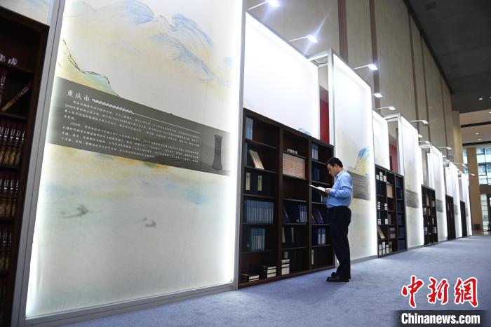 9月12日,長江文明書館在重慶設展陳,圖為展出的古籍。中新網(wǎng)記者 陳超 攝