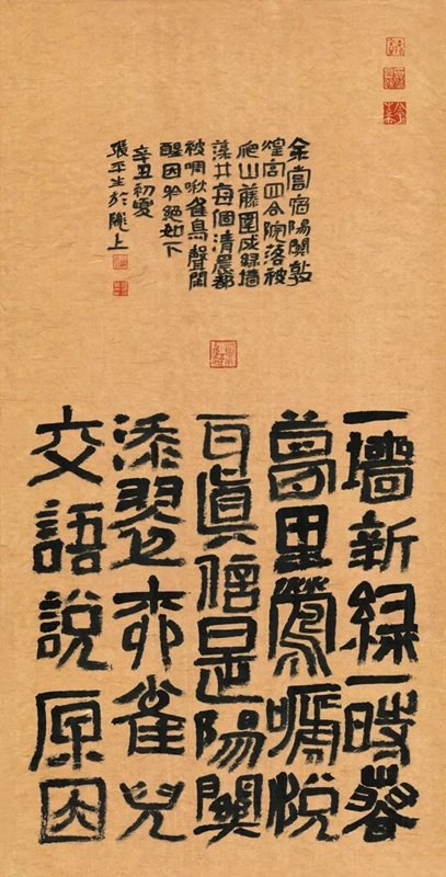 張平生是“詩(shī)人中的書(shū)法家,是書(shū)法家中的詩(shī)人”,是真正實(shí)現(xiàn)“我筆寫(xiě)我文”的為數(shù)不多的“藝文兼?zhèn)?rdquo;型書(shū)法家。他的的書(shū)法,充分發(fā)揮“二爨”優(yōu)勢(shì),上溯漢碑簡(jiǎn)牘,把三者的風(fēng)格重新優(yōu)化組合,生發(fā)出新的系列,活化了“二爨”在當(dāng)代的創(chuàng)作形態(tài),獲得廣泛贊譽(yù)。