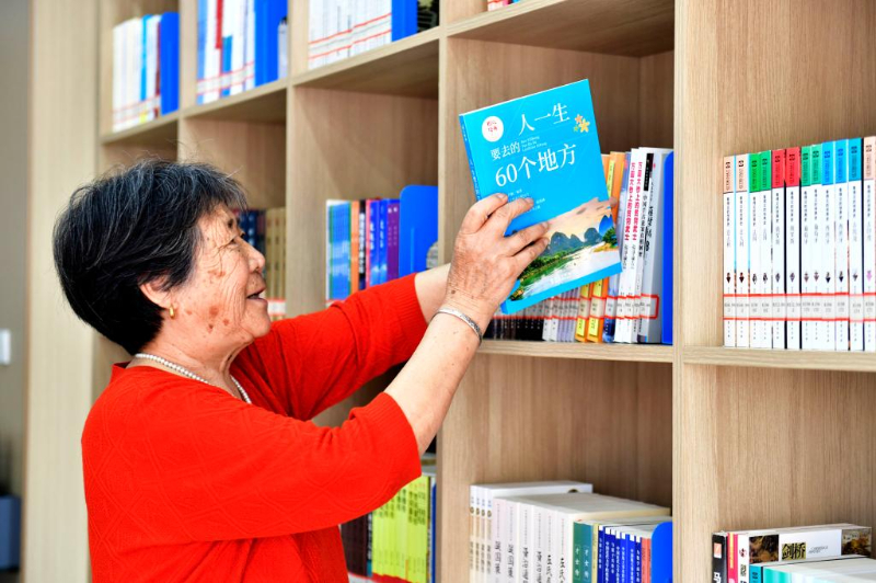 5月23日,在日照市東港區(qū)城市書房石臼所館,讀者從書架上取書。