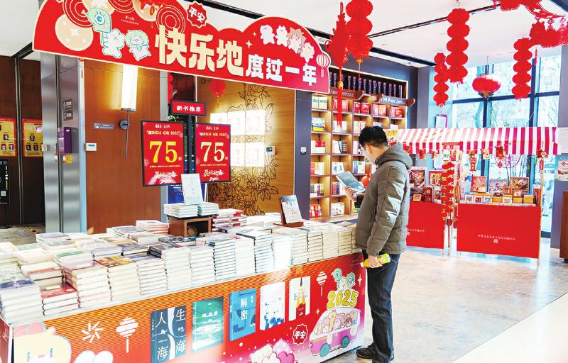 2月4日,讀者在甘肅省新華書店西北書城設置的“迎新悅讀啟航2025”炫春精品圖書聯(lián)展展臺前挑選自己喜歡的圖書。