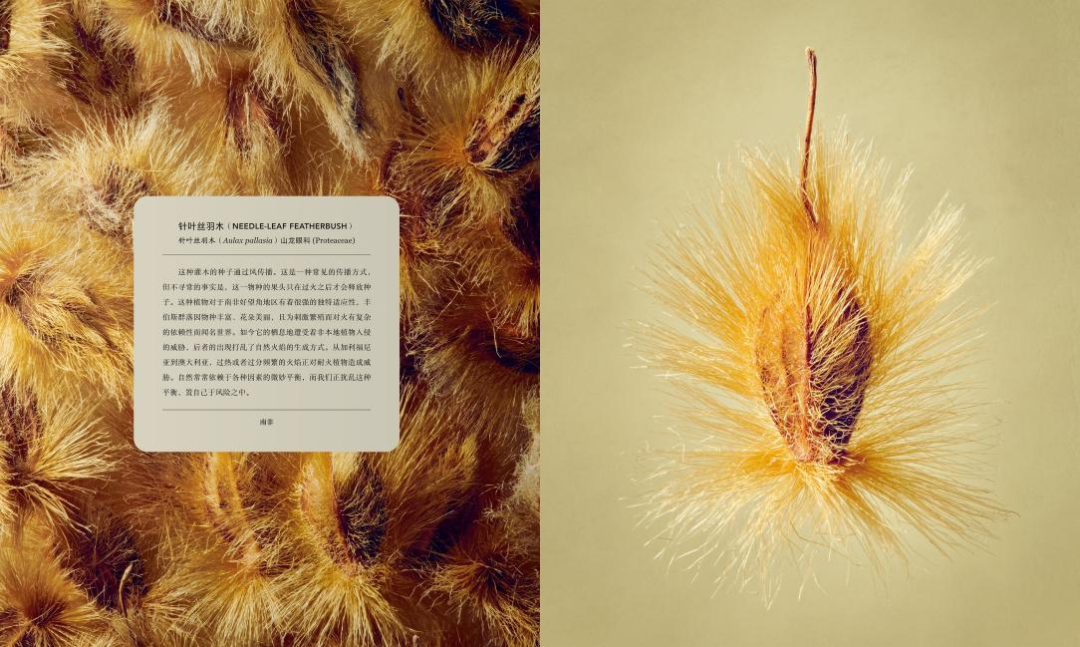 隨后,植物園耗時(shí)6個(gè)月,從3500份標(biāo)本中精心篩選出100種植物果實(shí)與種子。列文·比斯將這些攝影對(duì)象放大至80倍,捕捉到植物表面豐富多樣的細(xì)節(jié),照片的精細(xì)程度超乎想象。每張圖片還配有一段簡(jiǎn)潔的科普文字,不僅反映了100多年來(lái)植物的采集狀況,展示了種子的傳播方式,還介紹了人類(lèi)對(duì)植物材料的利用方法。