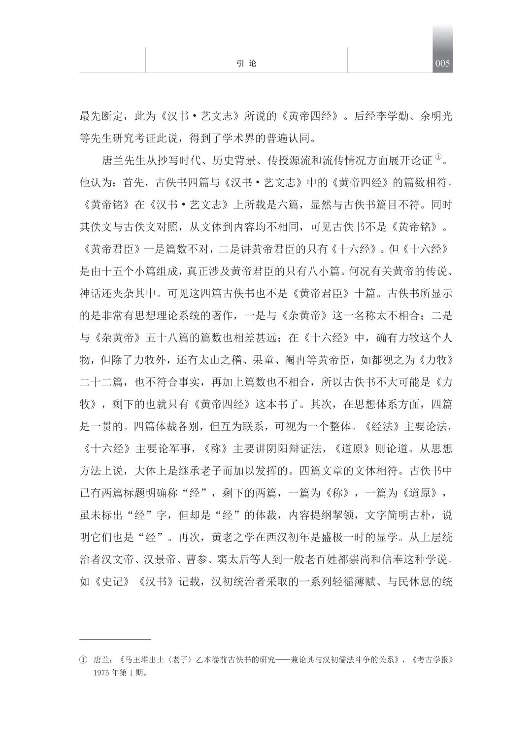 《黃帝四經(jīng)》包含《經(jīng)法》《十大經(jīng)》《稱經(jīng)》《道原經(jīng)》四部經(jīng)典,出土于長(zhǎng)沙馬王堆三號(hào)漢墓,附于帛書《老子乙本》前。