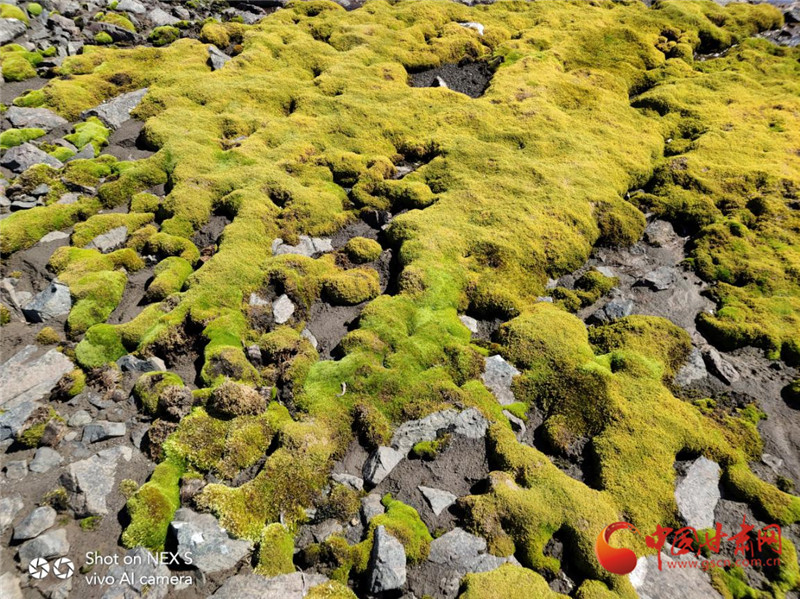 “厚厚的苔蘚遠(yuǎn)看像一大片草原,近看這‘綠絨毯’上還長(zhǎng)著南極發(fā)草呢。有時(shí)候我覺(jué)得大自然也很神奇,在這么惡劣的自然條件下,竟然還有生長(zhǎng)如此茂盛的植物。”