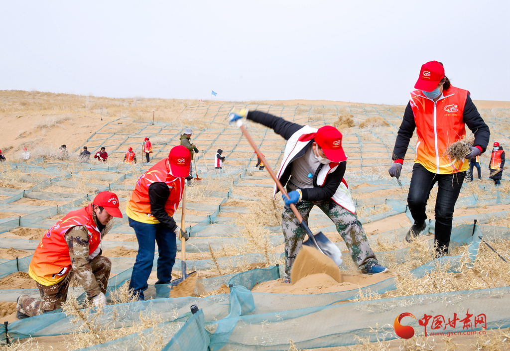 當(dāng)日,張掖市臨澤縣市民來(lái)到平川鎮(zhèn)一治沙區(qū)義務(wù)壓沙障、栽梭梭,拉開(kāi)了造林3.64萬(wàn)畝、防沙治沙3萬(wàn)畝年度改善生態(tài)環(huán)境“接力賽”的帷幕。