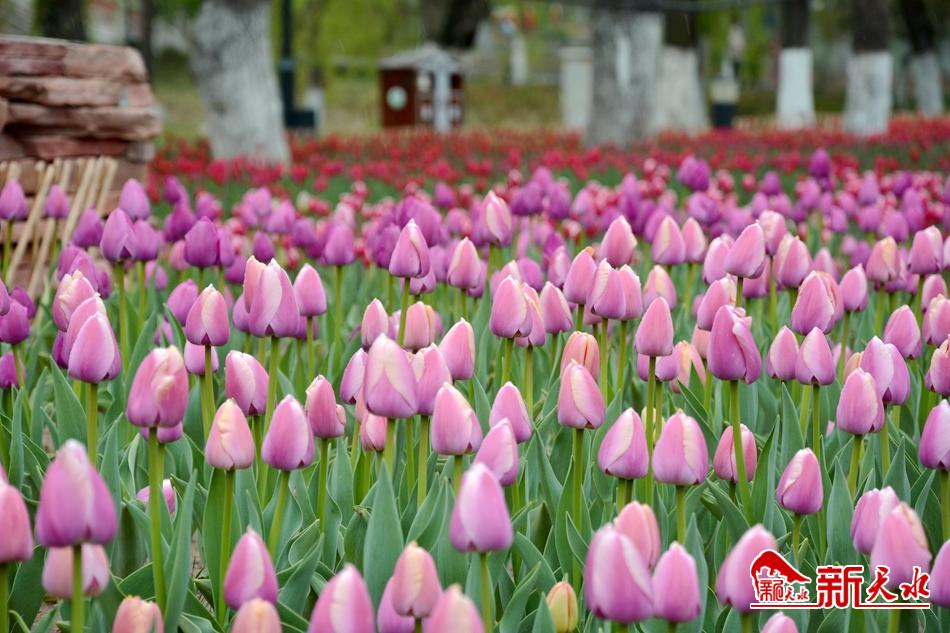 在經(jīng)歷了一個(gè)漫長(zhǎng)的嚴(yán)冬之后,馬跑泉公園的25萬(wàn)余株郁金香和5萬(wàn)余盆各類(lèi)時(shí)令鮮花在麥積大地上郁郁蔥蔥的綻放著。