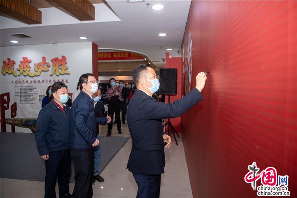 2020年4月17日上午,由中共重慶市九龍坡區(qū)委宣傳部、重慶市九龍坡區(qū)文化和旅游發(fā)展委員會(huì)、重慶市九龍坡區(qū)衛(wèi)生健康委員會(huì)、重慶市九龍坡區(qū)地方志編撰中心聯(lián)合主辦,重慶巴人博物館、重慶市九龍坡區(qū)非物質(zhì)文化遺產(chǎn)保護(hù)中心承辦的“戰(zhàn)疫必勝——九龍坡區(qū)抗擊新冠肺炎疫情專題展”在重慶巴人博物館正式開(kāi)展,市文化和旅游發(fā)展委員會(huì)副主任幸軍、九龍坡區(qū)委常委、宣傳部部長(zhǎng)顏朝華、九龍坡區(qū)政府副區(qū)長(zhǎng)趙文明、市文化和旅游發(fā)展委員會(huì)非物質(zhì)文化遺產(chǎn)處處長(zhǎng)嚴(yán)小紅、文物保護(hù)與考古處處長(zhǎng)熊子華、博物館與社會(huì)文物處處長(zhǎng)王發(fā)榮出席開(kāi)展儀式。