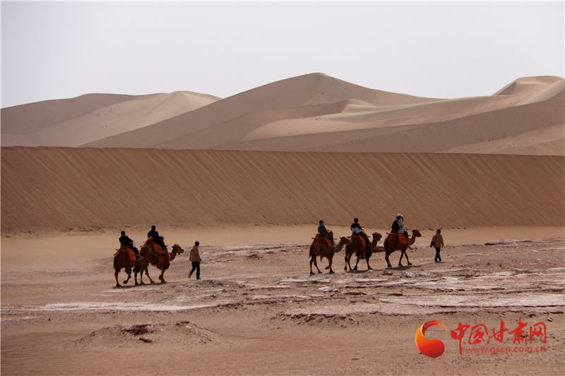 5月19日是中國(guó)旅游日,游客來(lái)到甘肅省敦煌市鳴沙山月牙泉景區(qū),欣賞大漠壯美風(fēng)光,體驗(yàn)獨(dú)特絲路風(fēng)情。