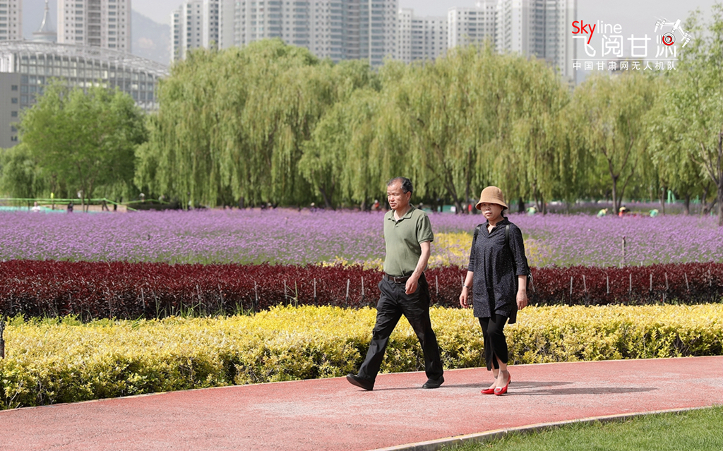 進(jìn)入六月,蘭州馬拉松公園種植的大片馬鞭草已進(jìn)入花期,還有醉蝶花、金雞菊、金娃娃萱草等花卉點(diǎn)綴出豐富的色帶,讓大河之城更具詩情畫意。下面請(qǐng)跟著中國甘肅網(wǎng)《飛閱甘肅》的鏡頭從空中俯瞰夏日的花海,然后再來個(gè)鮮花特寫,感受市民徜徉其中的那份愜意。