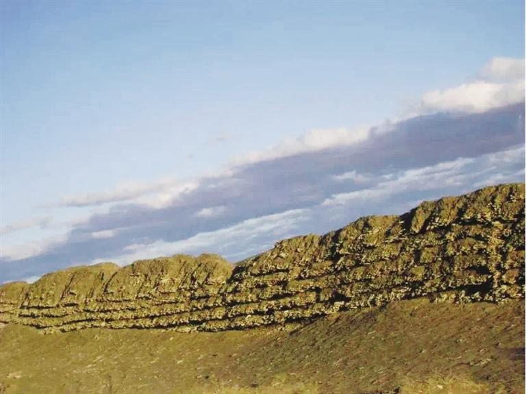 花海漢長城遺址位于玉門市花海鎮(zhèn)西泉村頭墩西側(cè)至二墩東側(cè),西起三墩,東至花海頭墩,全長約3.5公里,長城基寬約2.4米,用沙石、紅柳分層夯筑,最高部分保存有紅柳7層,是河西走廊漢代長城遺址中保存較完好的地段之一。為有效保護(hù)漢長城花海段遺址,近年來,玉門市積極實施漢長城防護(hù)工程,對該段因長期遭受風(fēng)力侵蝕,病險較為嚴(yán)重的長城本體進(jìn)行了搶險加固,在花海鎮(zhèn)頭墩西側(cè)至二墩河壩間1.5公里地段內(nèi)敷設(shè)了6層全封閉刺鋼絲網(wǎng),并在漢長城內(nèi)外兩側(cè)安裝防護(hù)欄、樹立保護(hù)標(biāo)志、埋設(shè)界樁界碑,有效遏制了人為破壞,對漢長城的保護(hù)發(fā)揮了積極作用。