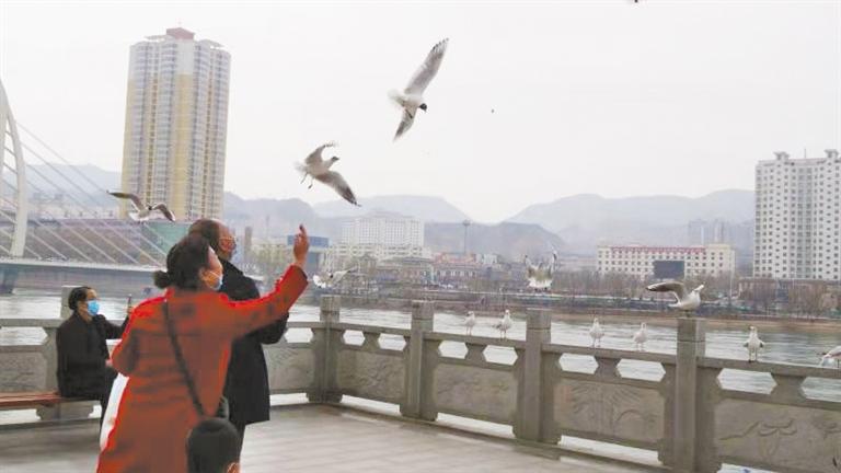 冬季劉家峽流出的黃河水清澈見底,永靖縣休閑公園里紅嘴鷗悠閑地在河面飛舞……近日,成群結(jié)隊的快樂小精靈不遠萬里如約而至,在黃河之濱避寒、撒歡,上下翻飛的身影給冬日的小城增添了一抹靚麗的風景。