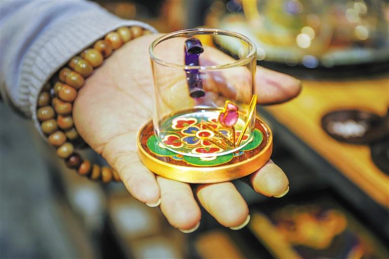 環(huán)顧李海明琺瑯?biāo)囆g(shù)館,工藝的極致與色彩的沉淀,令人震撼,在這位50多歲的中年男子的腦海里,總有新鮮的點(diǎn)子涌現(xiàn)。他告訴記者,他正在和一家古箏廠家合作,將他的琺瑯?biāo)囆g(shù)運(yùn)用于古箏這一傳統(tǒng)樂(lè)器,讓傳統(tǒng)文化融入當(dāng)代生活。
