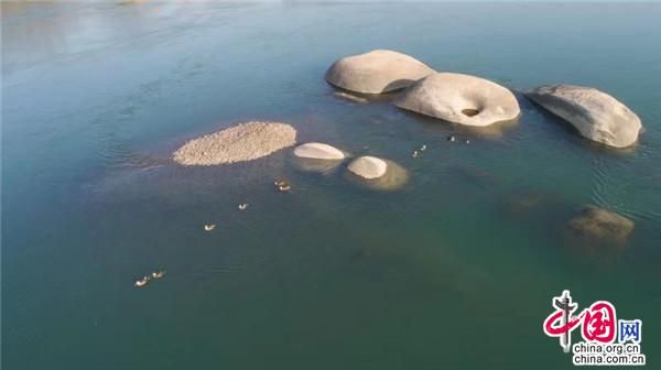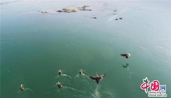 1月12日,在湖南桃江羞女湖國(guó)家濕地公園當(dāng)?shù)財(cái)z影家協(xié)會(huì)成員用無人機(jī)有幸拍到一群正在資江戲水的野生保護(hù)物種——斑嘴鴨。