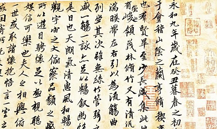 王羲之這位偉大的書法家,用他的眼睛,用一支筆,書寫了一個(gè)民族有秘密,讓人感受到時(shí)那個(gè)時(shí)代的氣息撲面而來(lái)。有感召力, 有感慨,把人性的光輝刻畫出入木入骨,滲透著淳厚的文化力量。