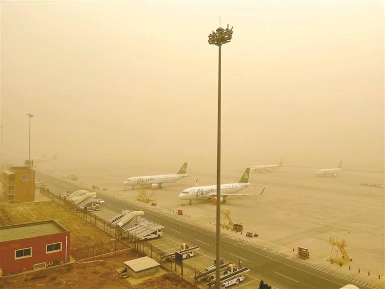 中川機場黃沙漫天。通訊員金帥群 黃貴彬 攝