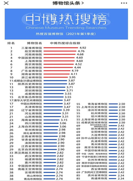 原標(biāo)題:一季度全國(guó)博物館熱搜榜發(fā)布 三星堆首登榜首