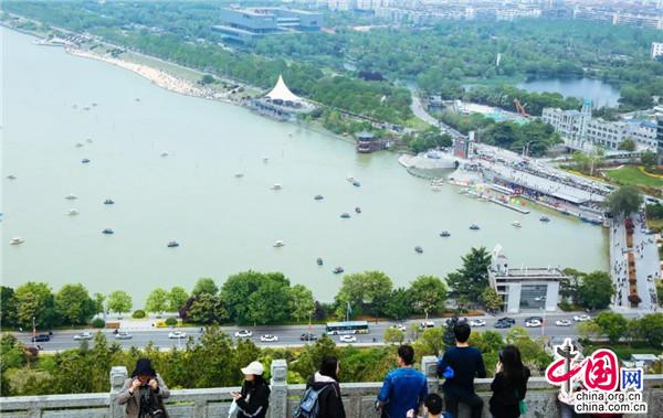 在大洞山、督公湖景區(qū),小丑嘉年華、氣球玩偶秀、魔法實驗室等成為假日溜娃的好去處,大小朋友在碧水藍天下與白鴿零距離互動,呈現(xiàn)了人與自然的和諧相處,非物質文化遺產項目表演“一葦渡江”中的漢服小哥衣袂飄飄地立于竹竿上,成為督公湖上一道靚麗的風景線。